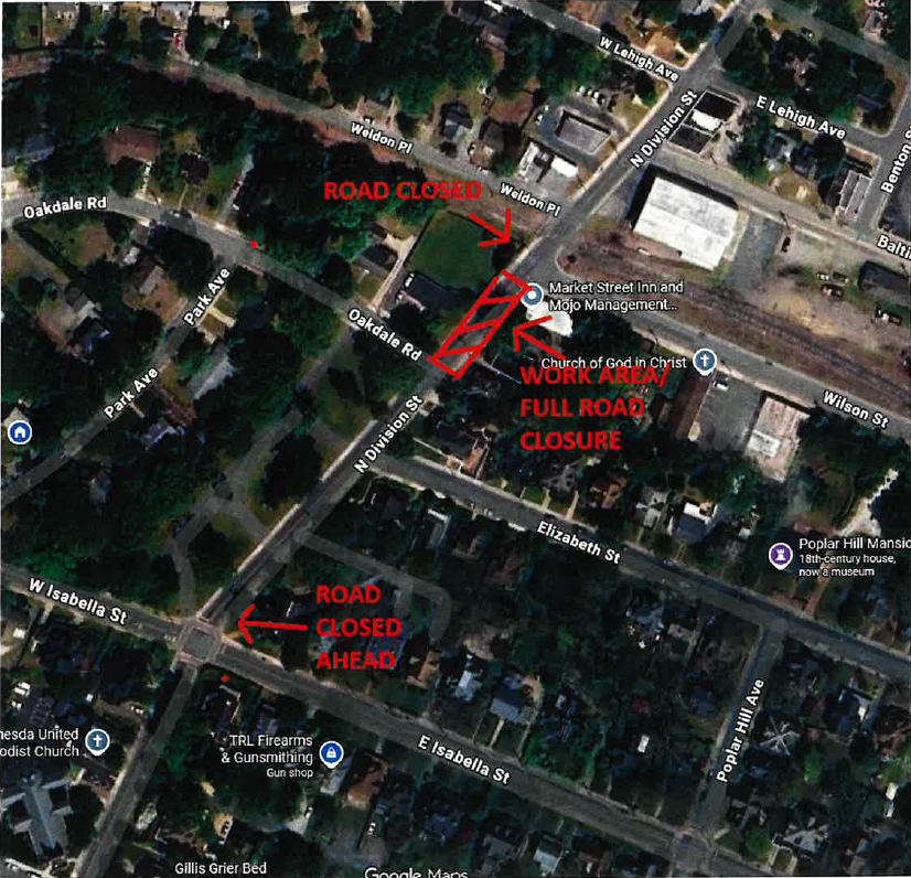 The City of Salisbury has temporarily closed the 600 block of North Division Street between Oakdale Road and Wilson Street through the end of the day tomorrow, Thursday, January 22.