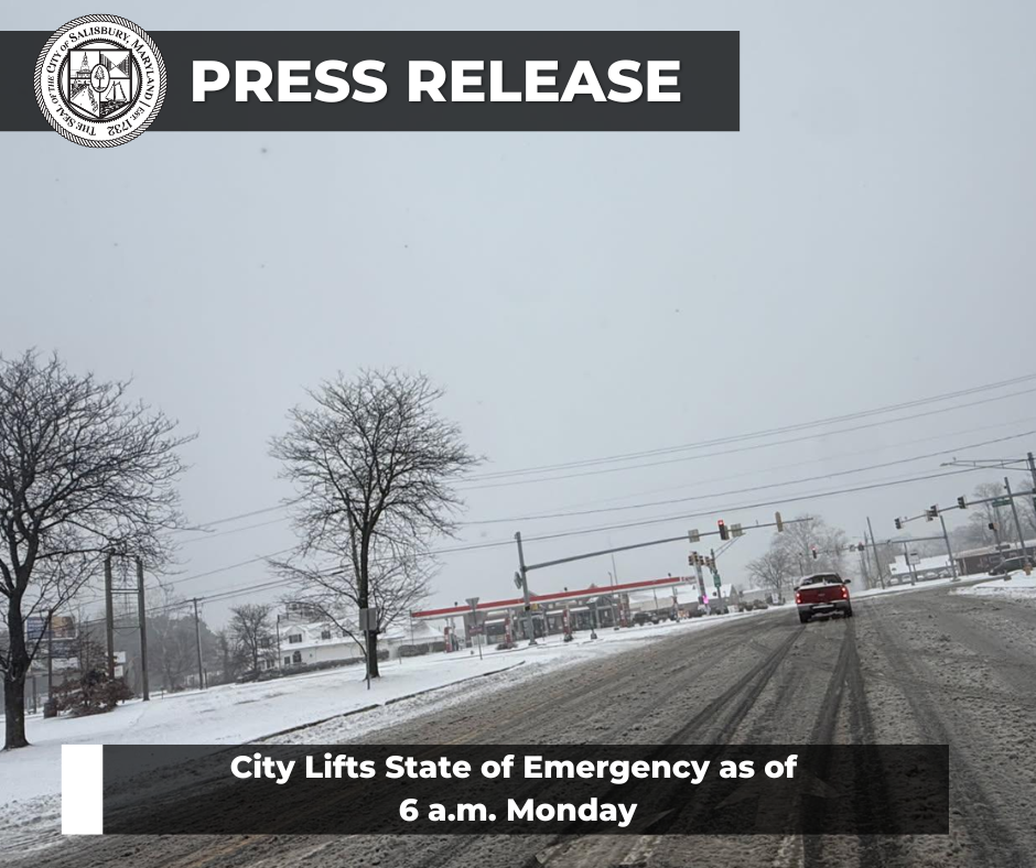 The City of Salisbury announced today that the local state of emergency will be lifted effective 6:00 a.m. tomorrow, Monday, January 26.