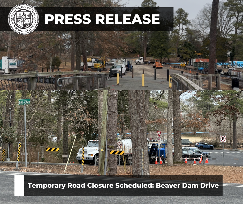 The closure is part of a major infrastructure project by the City of Salisbury Department of Water Works to replace the raw water main that carries water from the City’s well field to the water treatment plant.