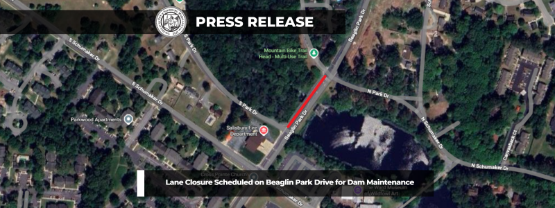 The City of Salisbury Department of Infrastructure and Development announces a scheduled lane closure on Beaglin Park Drive between North Park Drive and South Park Drive beginning Monday, Dec. 8.